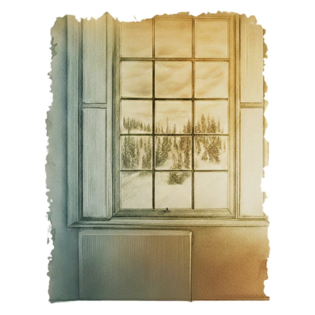Beyond the glass, a woman in white stands barefoot in the snow, her dress rippling like a shadow in the wind. She turns, and her dark, unblinking eyes find the child at the window.